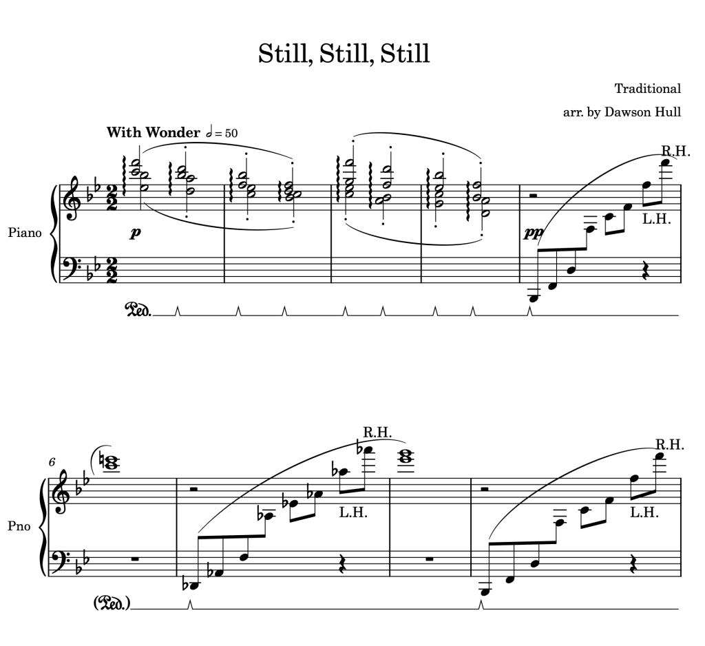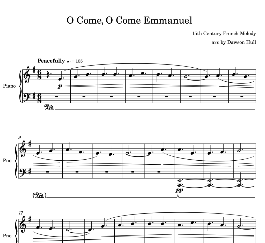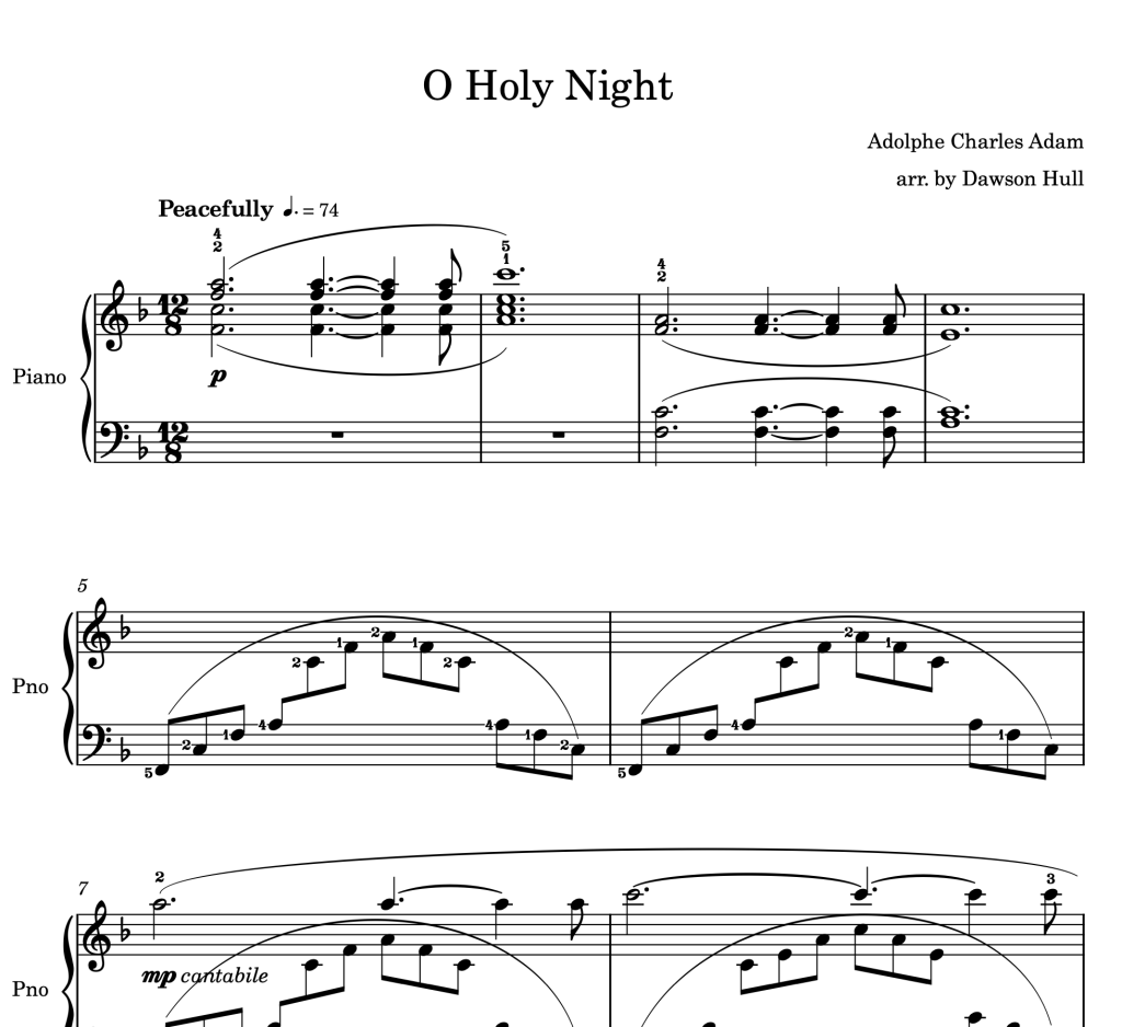 Sheet music Click here to purchase sheet music to Dawson’s compositions and arrangements. Still, Still, Still – Solo Piano $5.00 USD O Come, O Come Emmanuel – Solo Piano $5.00 USD O Holy Night – Solo Piano $5.00 USD